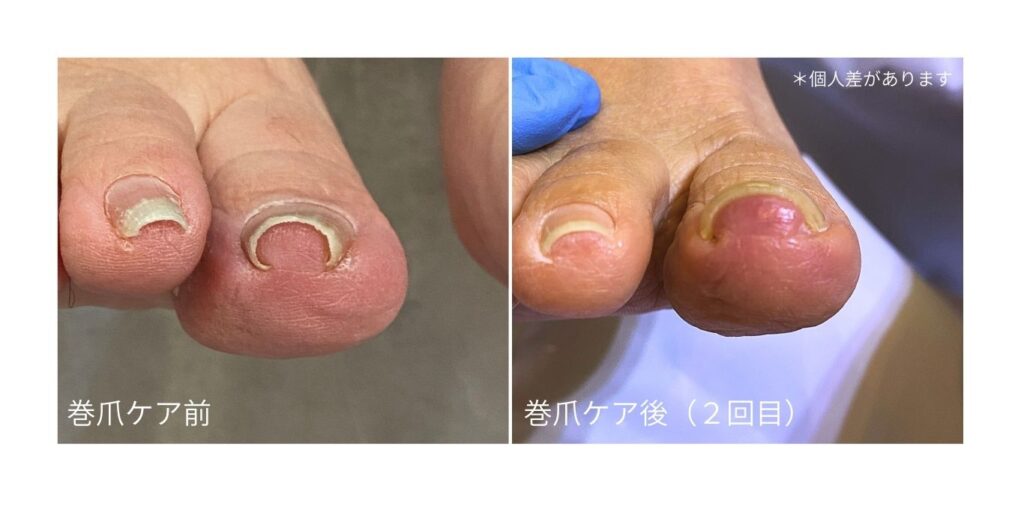 改善後は、月1回程度の爪切りサブスクリプションで予防的に通われる方が多いです。